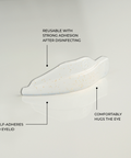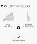 Glueless asymmetrical lash lift shields featuring a flexible, sticky design that hugs the eyelid, making wrapping quick and easy.