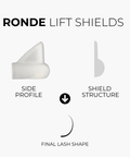 Glueless lash lift shields featuring a flexible, sticky design that hugs the eyelid, making wrapping quick and easy.